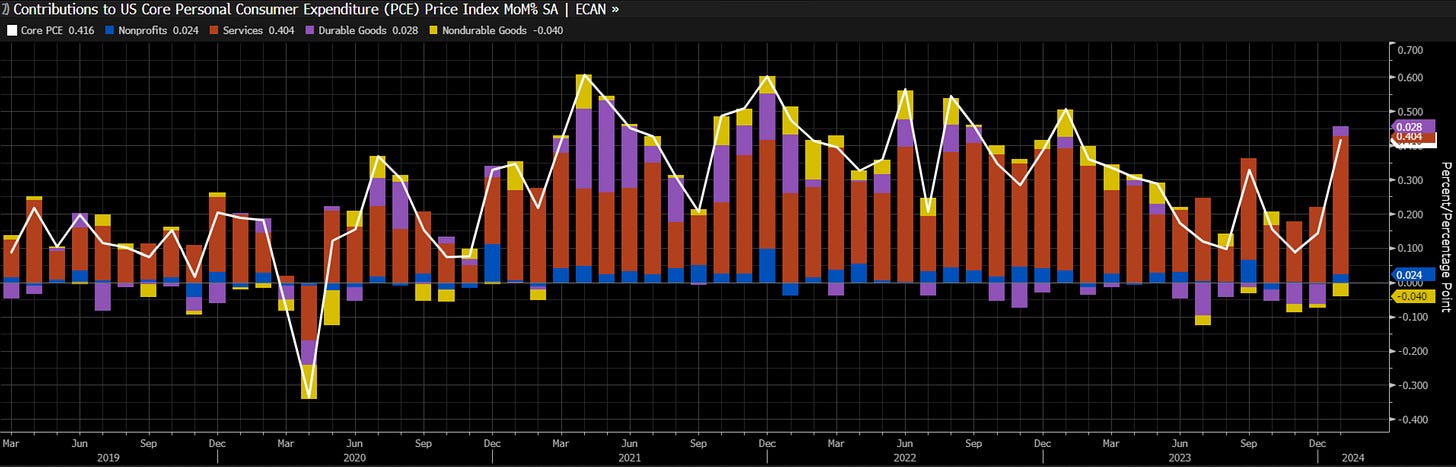 The Personal Consumption Expenditures (PCE) inflation data releases suggested that the recent increase in the previously-released consumer price index inflation was an early indicator of the impending Personal Consumption Expenditures (PCE) inflation data. The Month-over-Month (MoM) Supercore Personal Consumption Expenditures (PCE) and Core Personal Consumption Expenditures (PCE) inflation statistics have risen the most since 2021; this is a negative indication that FOMC officials should be attentive.