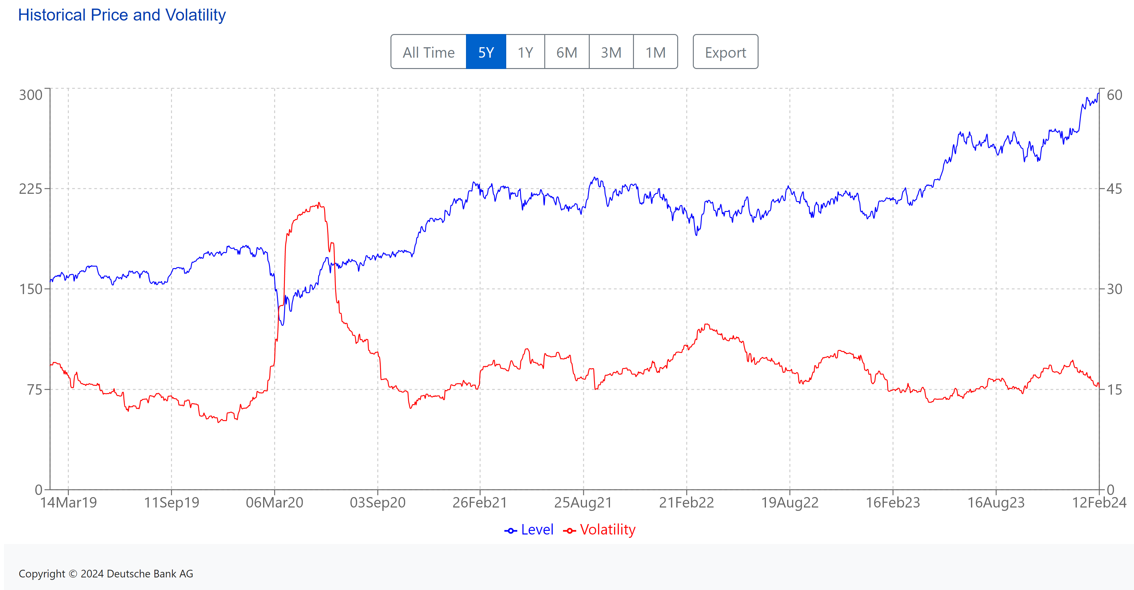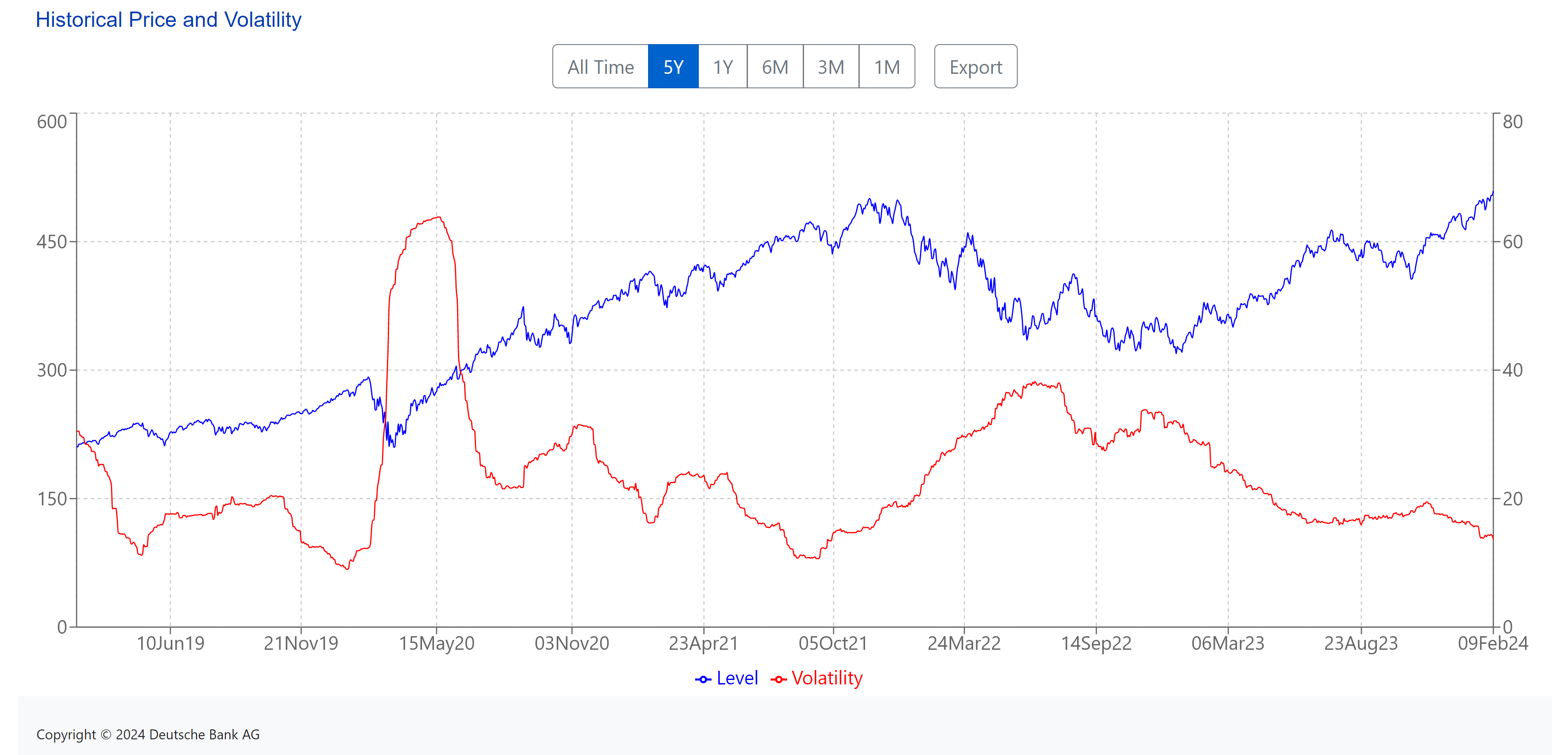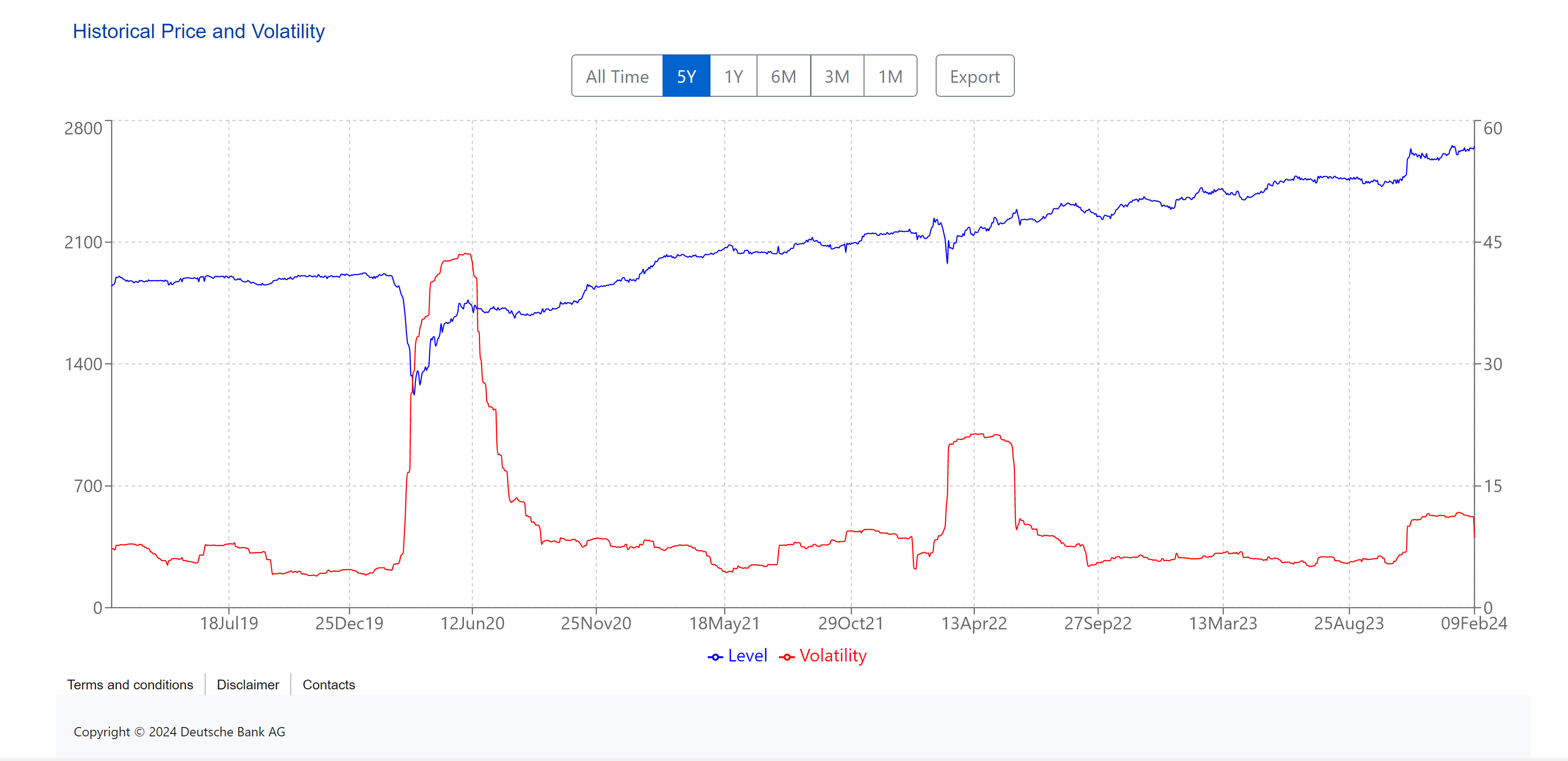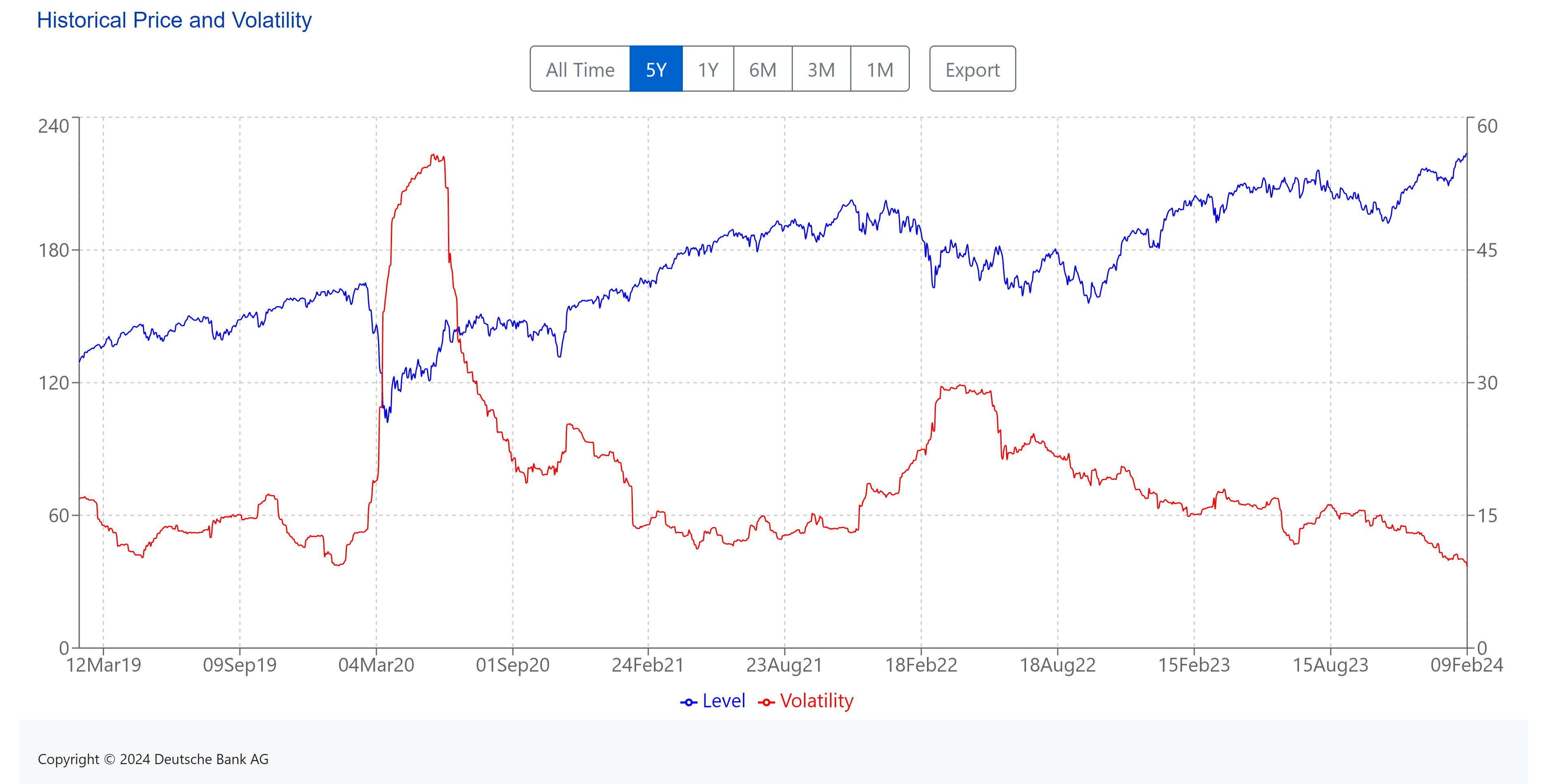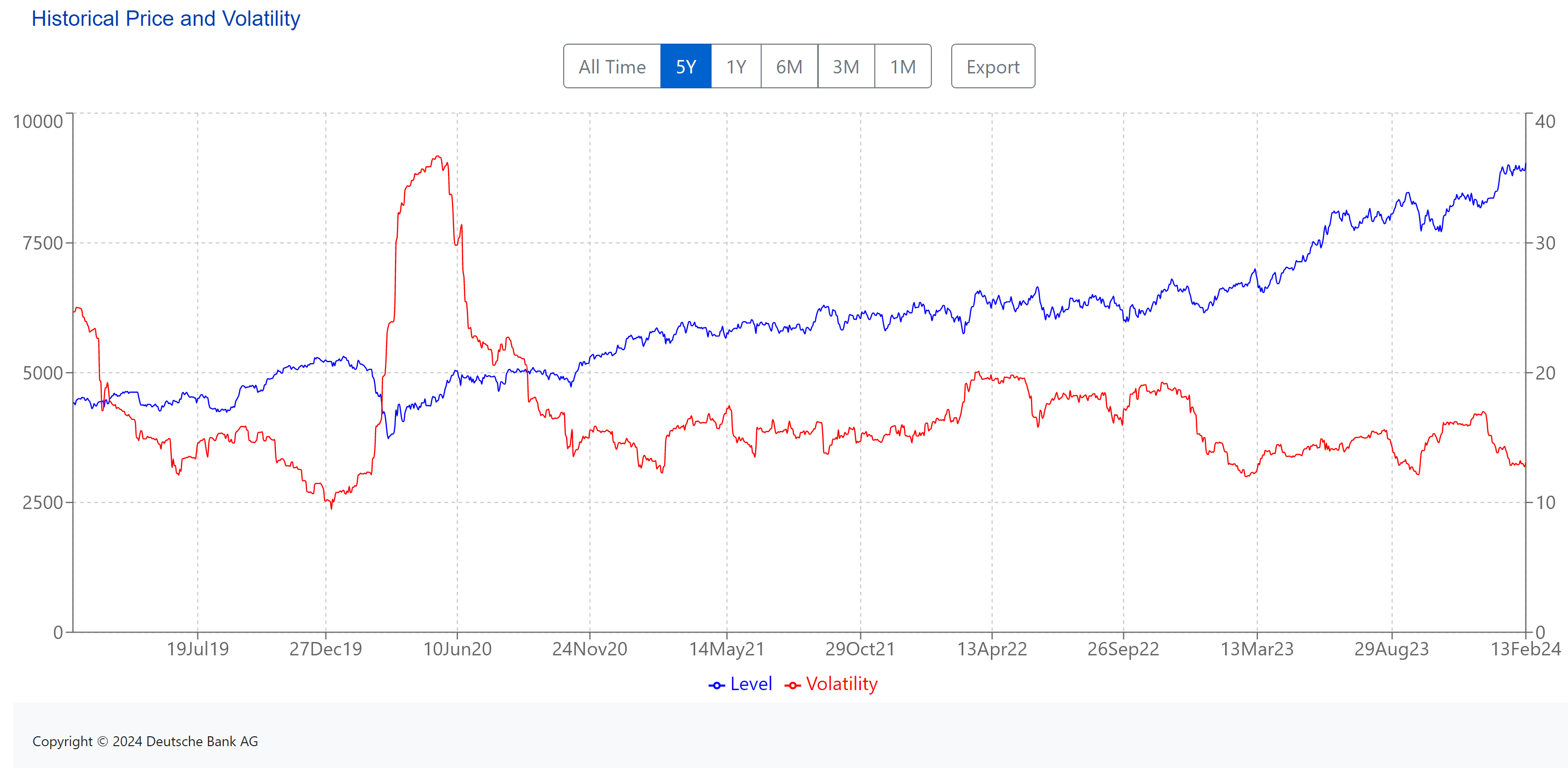 ![[ Left X-axis: Index data. (🟦) | Right X-axis: Volatility of the index. (🟥) ] | Data as of 02/09/2024 market close. | [ Left X-axis: Index data. (🟦) | Right X-axis: Volatility of the index. (🟥) ] | Data as of 02/09/2024 market close. |](https://substackcdn.com/image/fetch/$s_!ecRb!,w_1456,c_limit,f_auto,q_auto:good,fl_progressive:steep/https%3A%2F%2Fsubstack-post-media.s3.amazonaws.com%2Fpublic%2Fimages%2F438d08b8-a8a3-453e-9925-f643c6eb94f1_3802x1938.png)