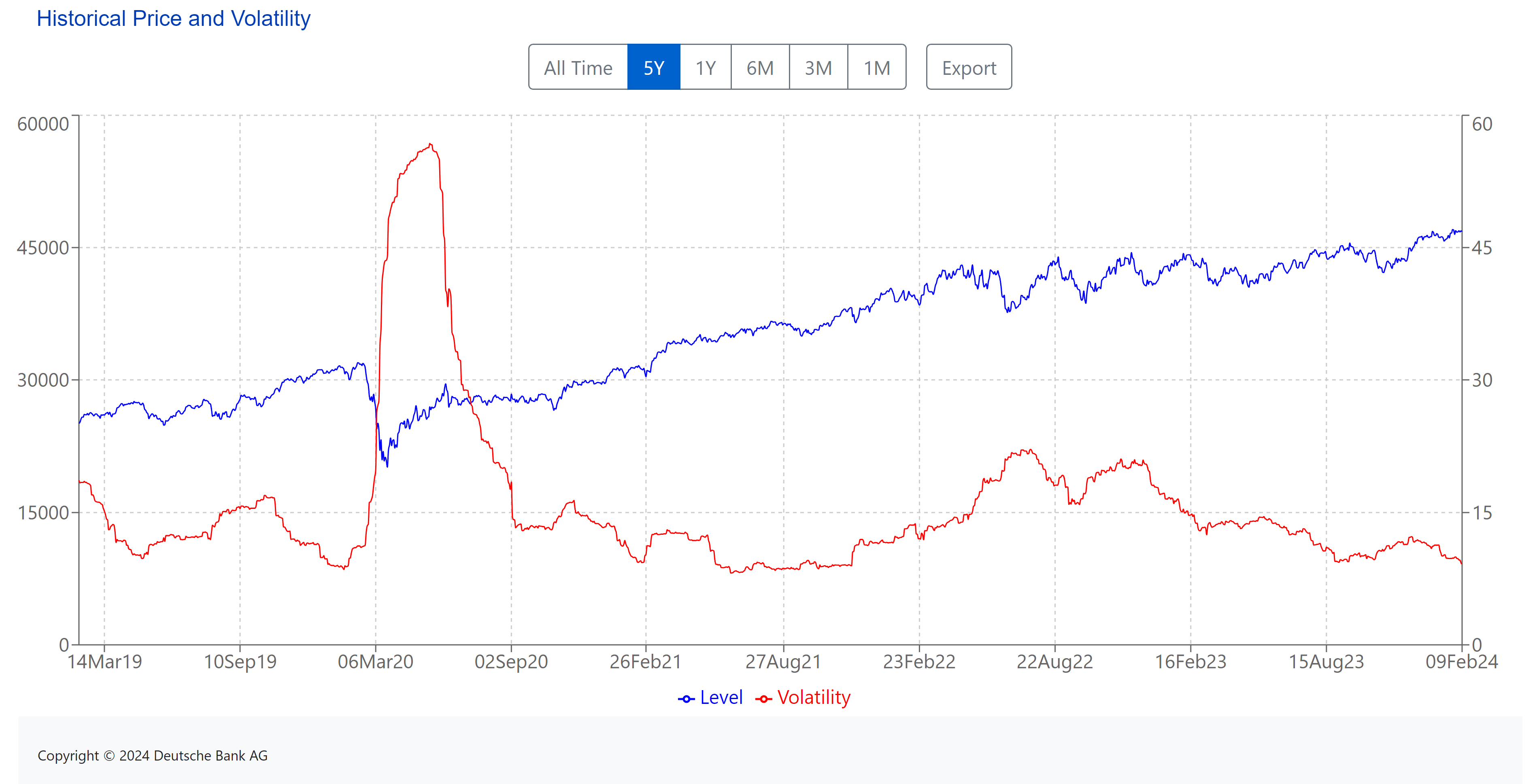 ![[ Left X-axis: Index data. (🟦) | Right X-axis: Volatility of the index. (🟥) ] | Data as of 02/13/2024 Tokyo market close. | [ Left X-axis: Index data. (🟦) | Right X-axis: Volatility of the index. (🟥) ] | Data as of 02/13/2024 Tokyo market close. |](https://substackcdn.com/image/fetch/$s_!YS1p!,w_1456,c_limit,f_auto,q_auto:good,fl_progressive:steep/https%3A%2F%2Fsubstack-post-media.s3.amazonaws.com%2Fpublic%2Fimages%2F9857057d-927e-40e8-875c-758d9f050642_3160x1548.png)