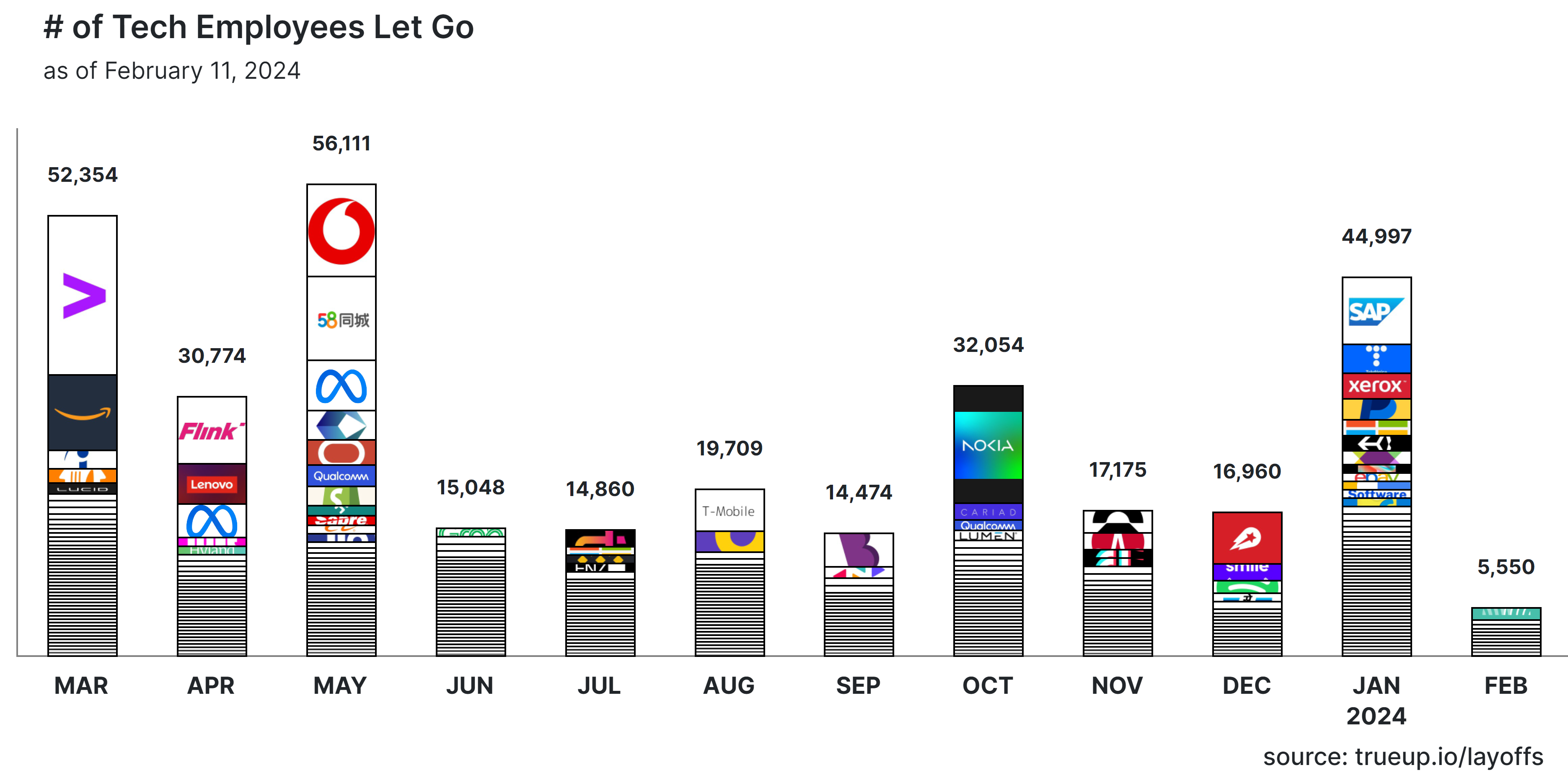 Figure 7. Tech Sector (QQQ 0.00%↑XLK 0.00%↑) Layoffs Lead The Job Cut Wave.