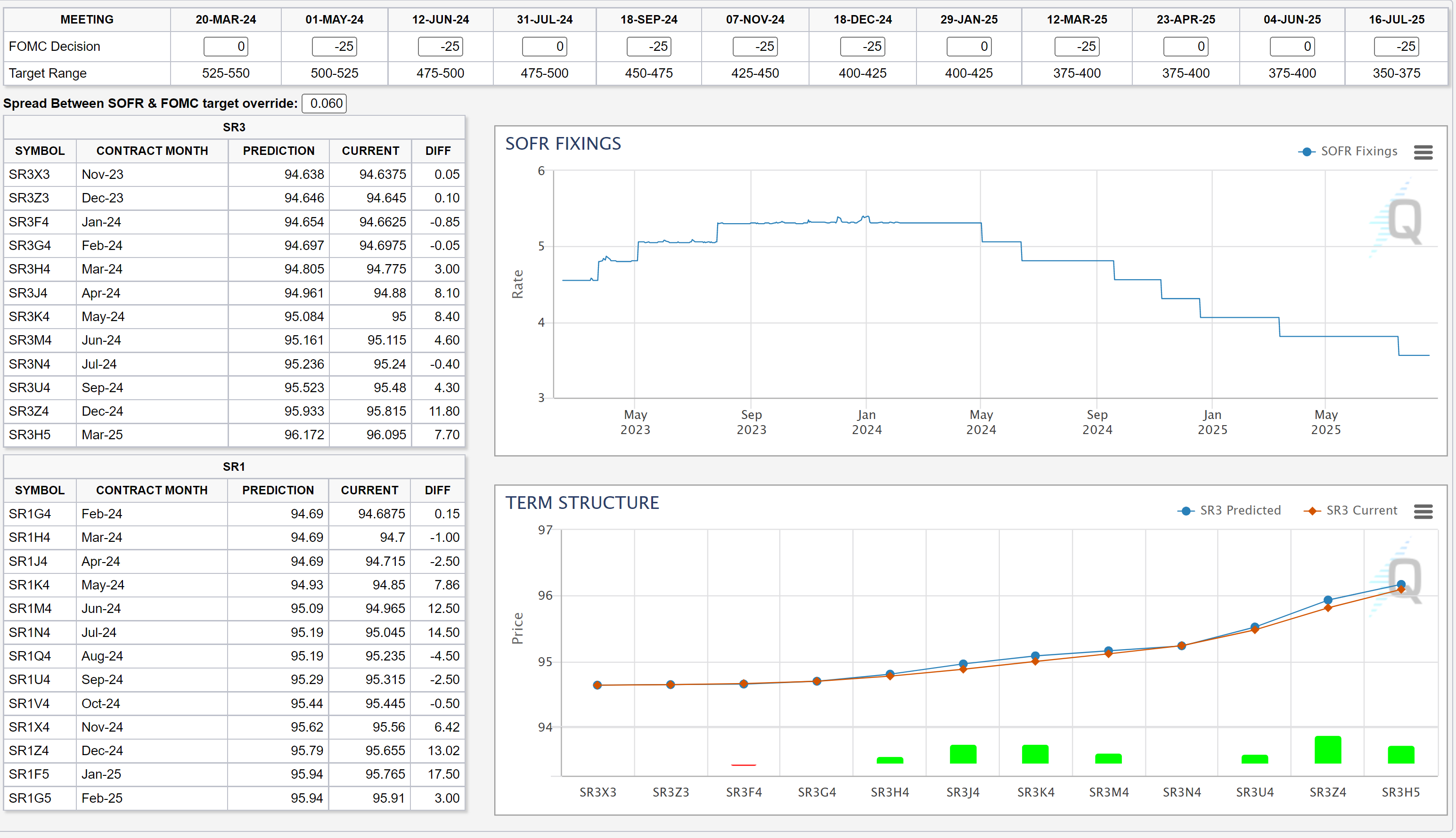 Geopolitics aside, when it comes to monetary policy, hawkishness is surging, which isn’t surprising as labor market strength lets the FOMC’s dual mandate be focused on price stability given the fact that inflation statistics haven’t reached the Federal Reserve’s price stability goal. Markets expect seven rate cuts by July 2025’s FOMC meeting, which is far more dovish than what the FOMC officials indicate in their stances and projections, although the spread between the market-priced rate path in the SOFR market and the FOMC target override is 0.060.