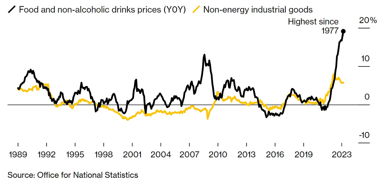 Figure 15. Food Prices and Core Goods Prices Are Causing Concern at the Bank of England.