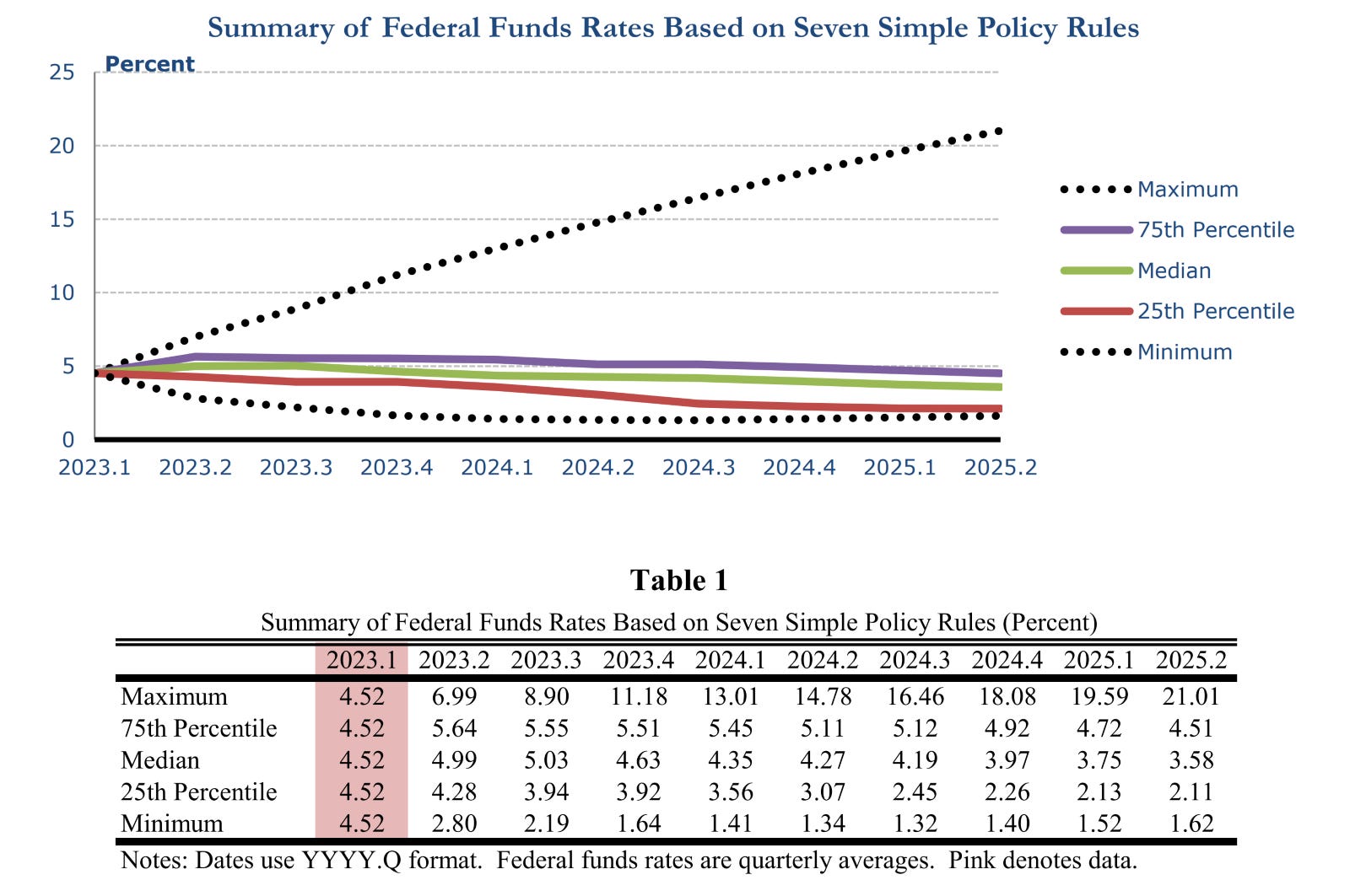 Figure 4. Summary of Federal Funds Rates Based on Seven Simple Policy Rules: