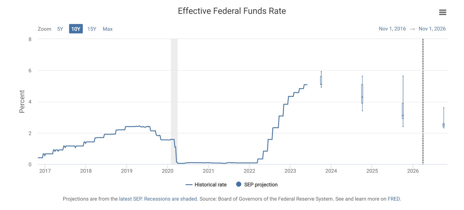 Figure 3. Effective Federal Funds Rate (Interest Rates) Projections by the FOMC.