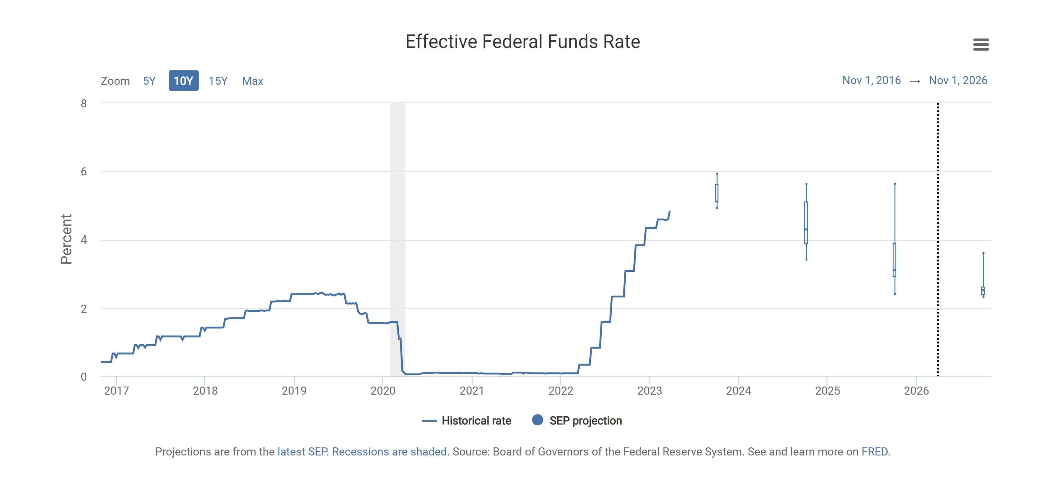 Figure 5. FOMC projections over the Effective Federal Funds Rate.