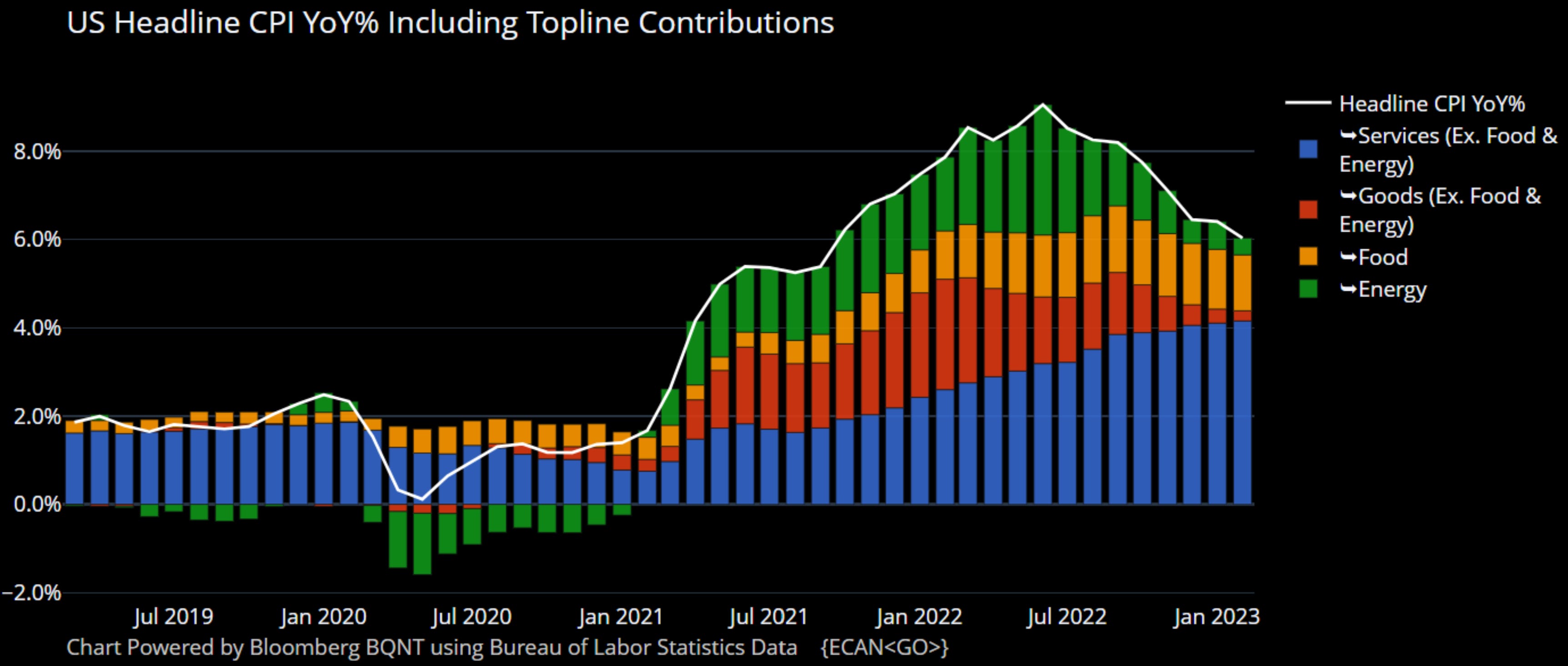 Figure 2. United States Headline Consumer Price Index Year-on-Year Percentage Change Including Topline Contributions.