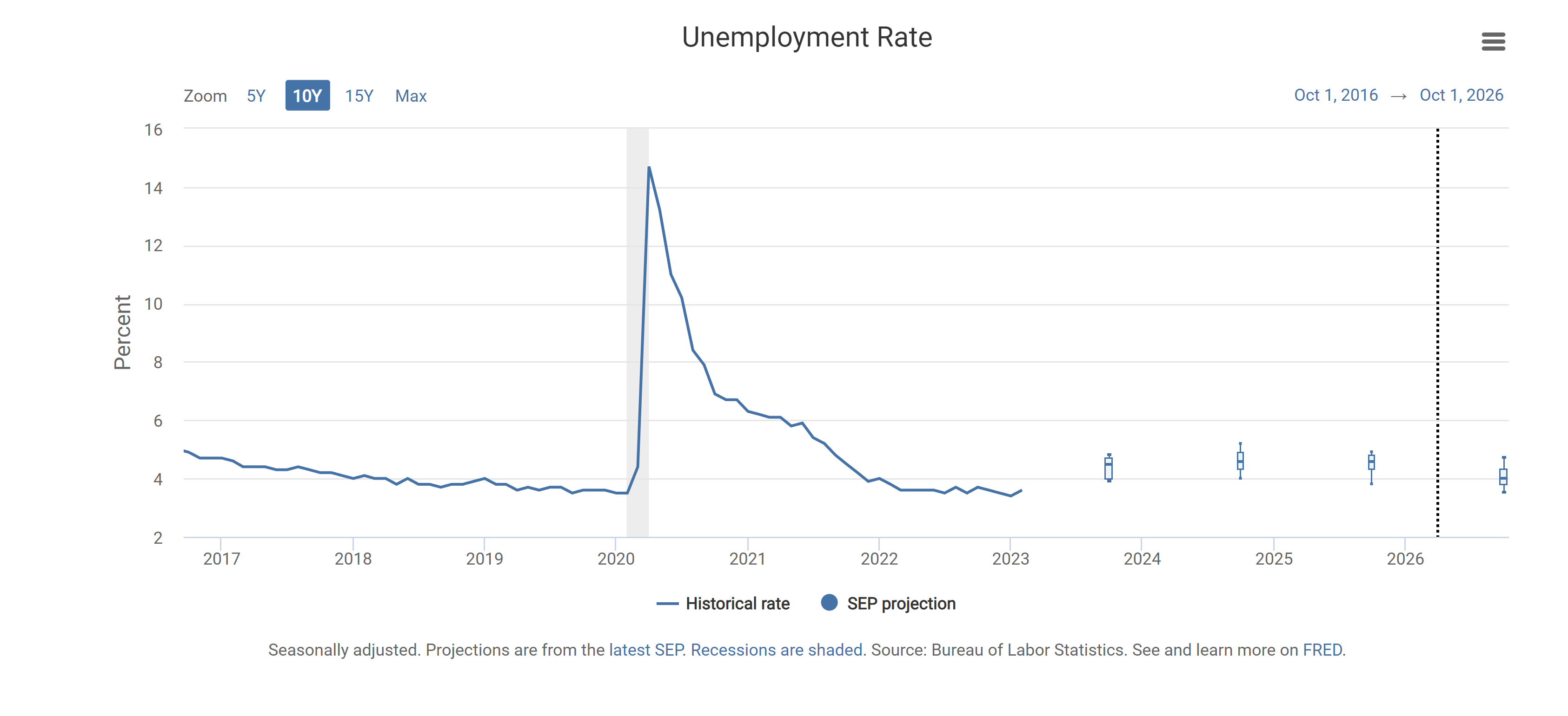 Figure 10. FOMC Unemployment Rate Projections.
