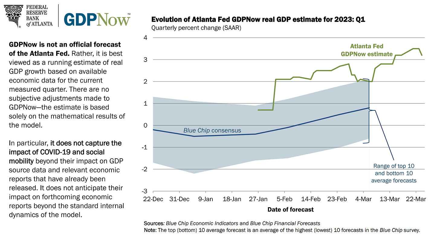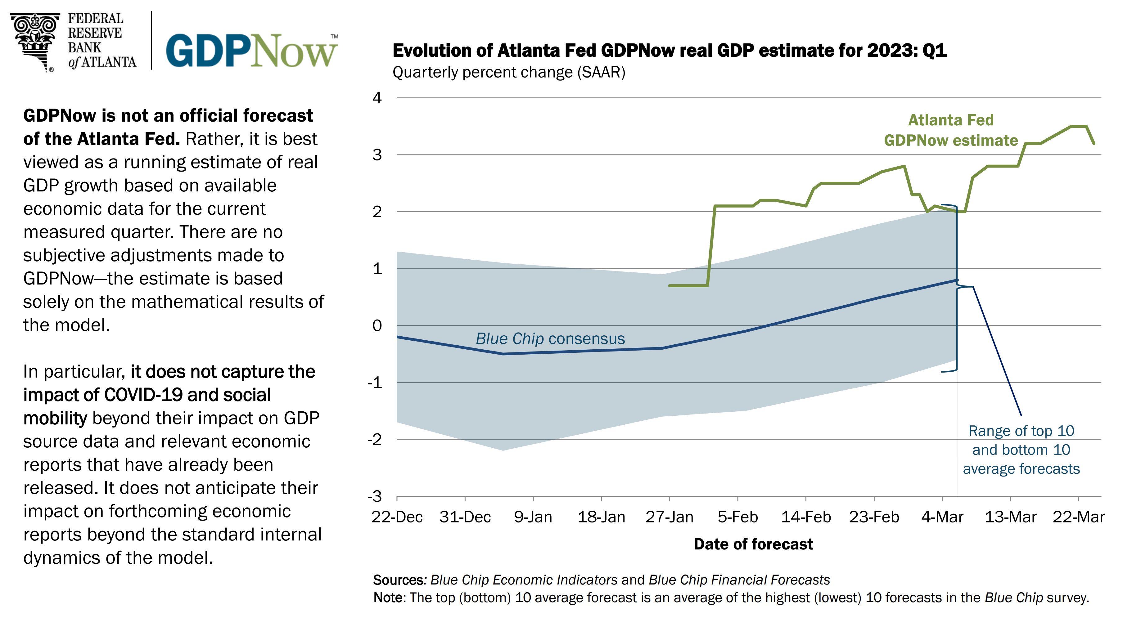 Figure 18. Evolution of Atlanta Fed GDPNow real Gross Domestic Product (GDP) estimate for the first quarter of 2023.