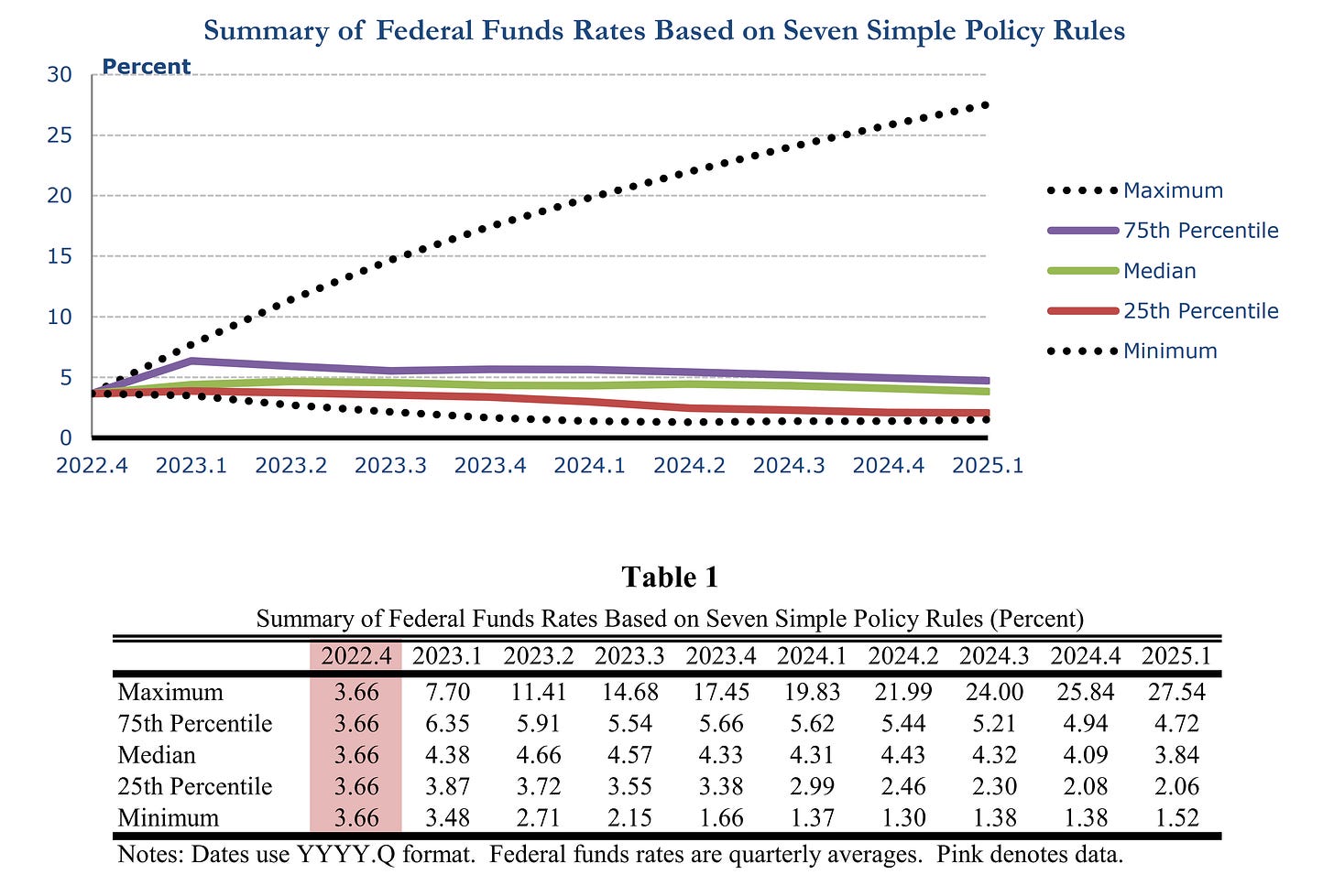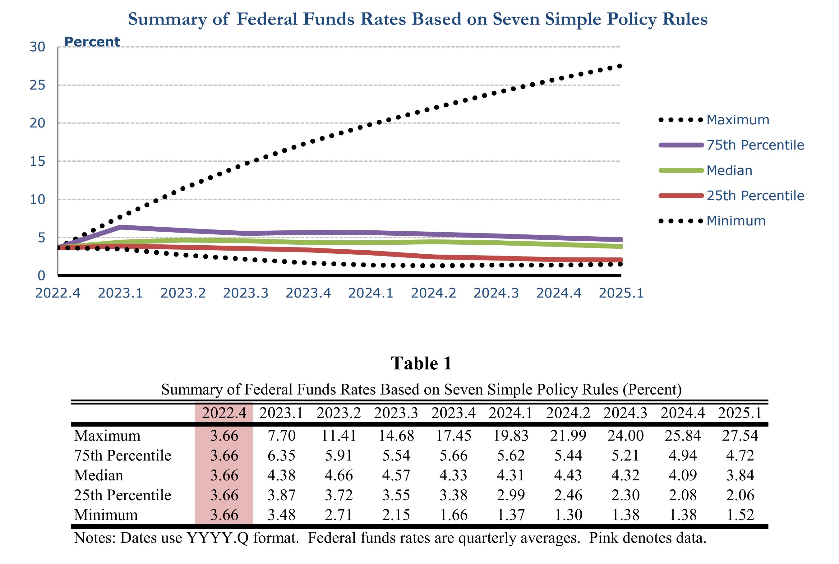 Figure 6. Summary of Federal Funds Rates Based on Seven Simple Policy Rules.