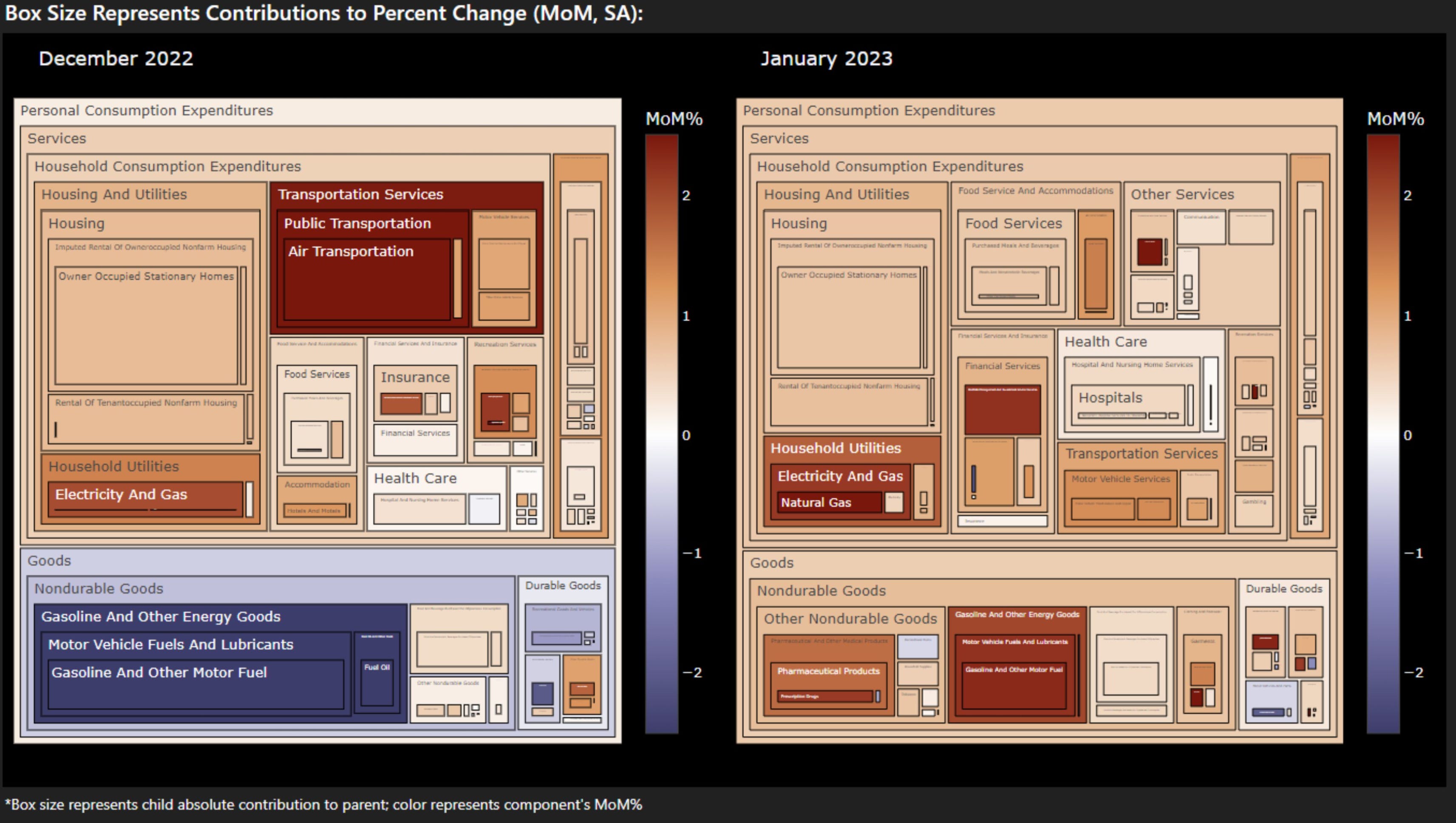 Figure 13. United States Personal Consumption Expenditures (PCE) Price Index, Month-over-Month Percentage Change, Seasonally Adjusted, Box Size Topline Contributions.