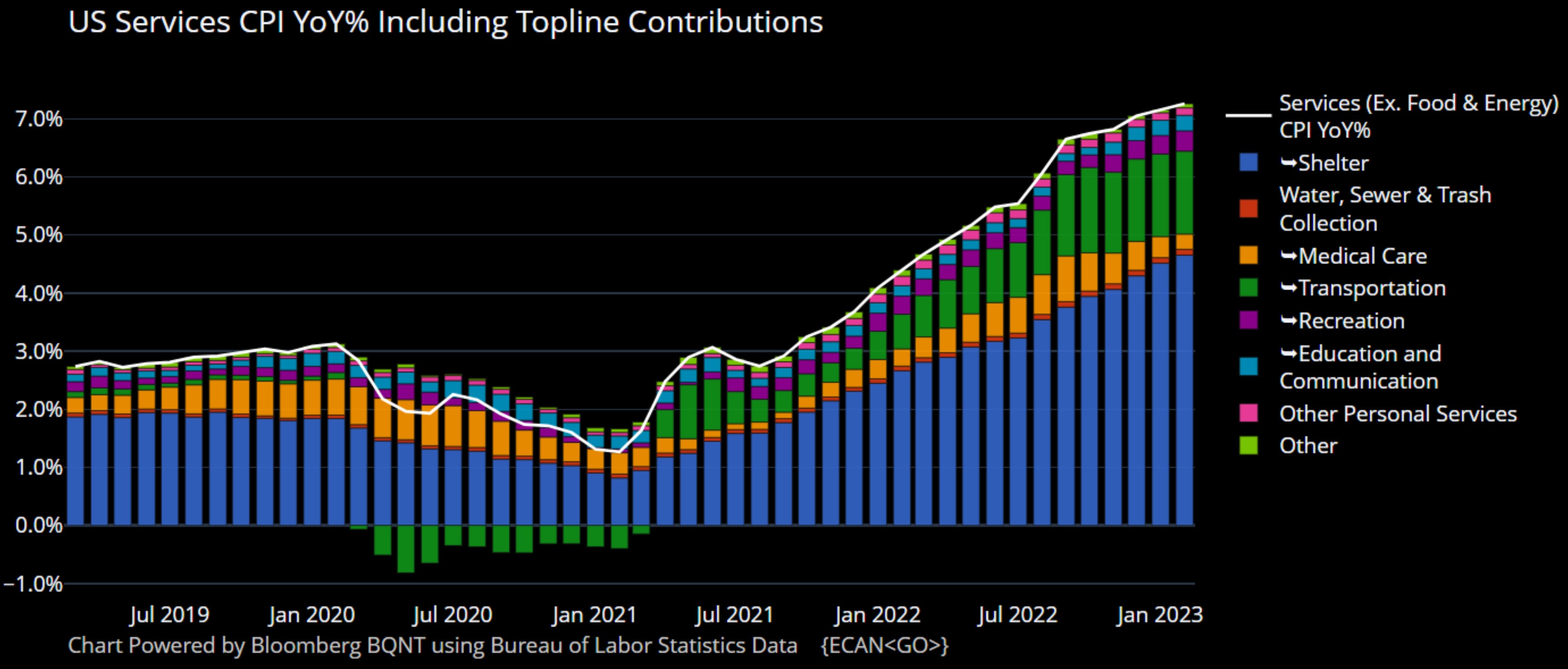 Figure 3. United States Services Consumer Price Index Year-on-Year Percentage Change Including Topline Contributions.