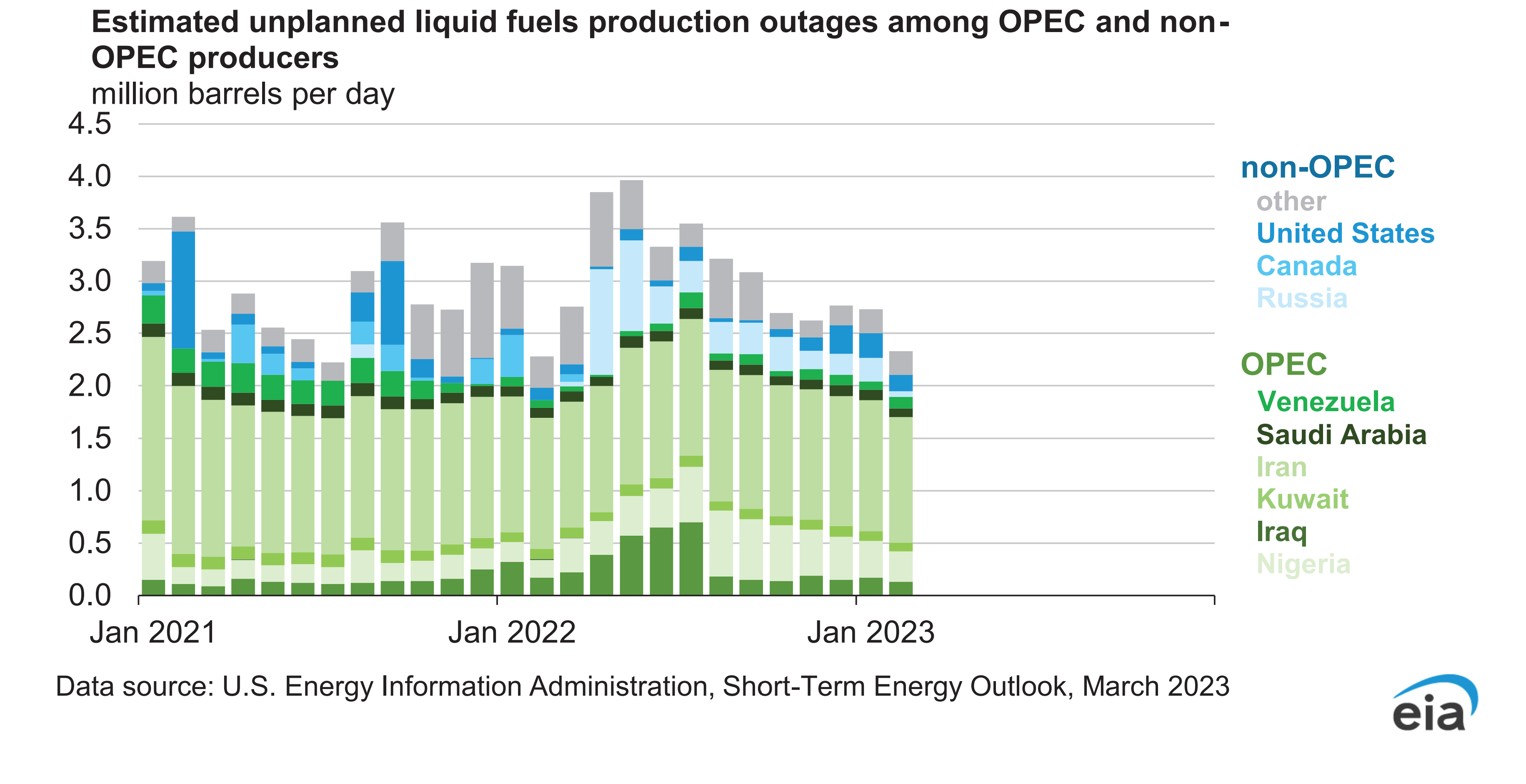 Figure 26. OPEC and Non-OPEC liquid fuels production.